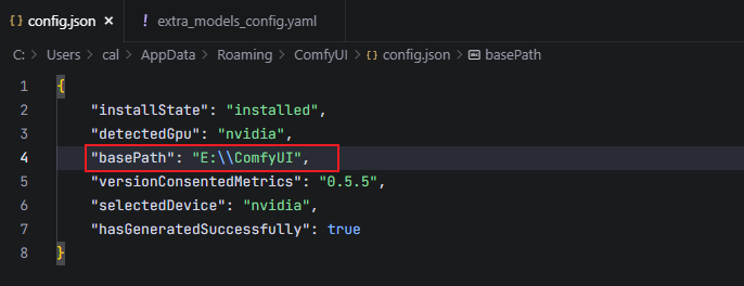 "basePath": "C:Users<YourUsername>DocumentsComfyUI"